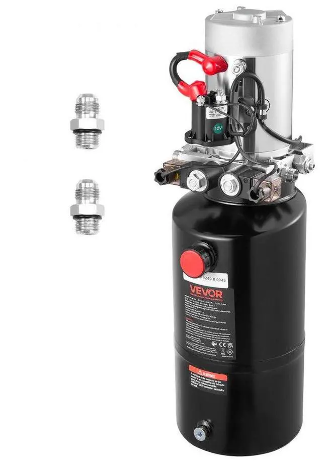 VEVOR 8 Quart Hydraulic Power Unit, Double Acting Dump Trailer Pump, 3200 PSI Max Relief Pressure & 0.91 GPM Flow Rate, DC 12V Hydraulic Pump with Metal Reservoir for Dump Trailer Car Lifting
