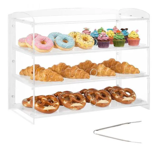 VEVOR Bakery Display Case, 3-Tier Commercial Countertop Pastry Display Case, Clear Acrylic Bread Box for Kitchen, Party Cake Cabinet with Flip-Up Door for Cookie Dessert Donut Bagel, 19" x 9.1" x 15"