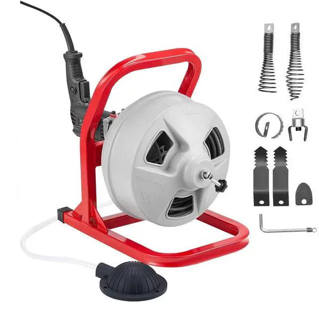 VEVOR Drain Cleaner Machine 50 FT x 5/16 Inch, Sewer Snake Auger with 228RPM Electric Drill, Manual Feed Drain Cleaning Machine with 6 Cutters & Air-activated Foot Switch for 2" to 4" Pipes
