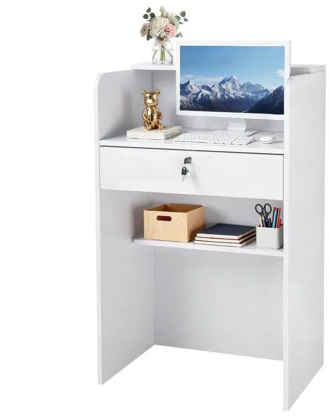 VEVOR Reception Desk, 23.6 inch Rectangular Front Counter Table, Modern Office Reception Desk with Drawer, Small Minimalist Retail Counter Table for Checkout, Lobby, Beauty Salon and Office, White