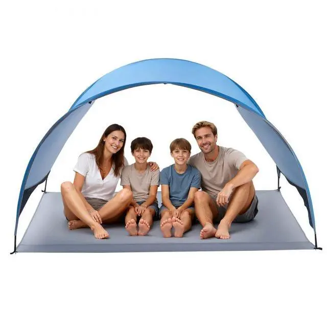 VEVOR Beach Tent Sun Shelter for 4 Person, UPF 50+ Protection, Portable Sun Shade Canopy with Carrying Bag & Ground Stakes, Lightweight and Easy Setup Beach Umbrella for Camping Fishing Outdoor Picnic