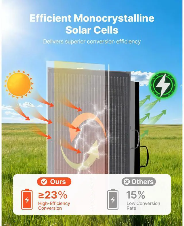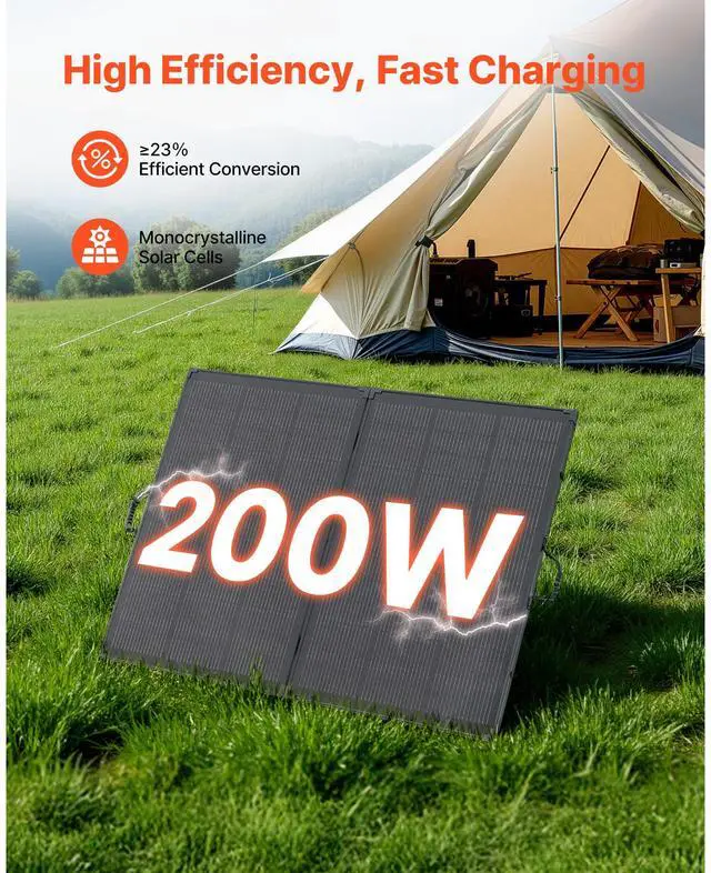 VEVOR 200W Foldable Solar Panel with Frame, 23% High-Efficiency Portable Monocrystalline Solar Panel Charger with 30A PWM Controller & MC4 Output, IP67 Waterproof for Camping, Hiking, RV Trips
