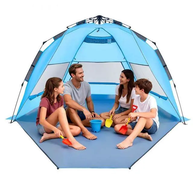 VEVOR Beach Tent Sun Shelter for 4 Person, Pop Up Beach Tent UPF 50+ Protection, Portable Sun Shade Canopy with Carrying Bag and Sand Pockets, Easy Setup Umbrella for Camping Fishing Outdoor Picnic