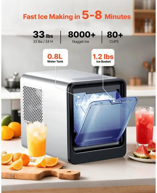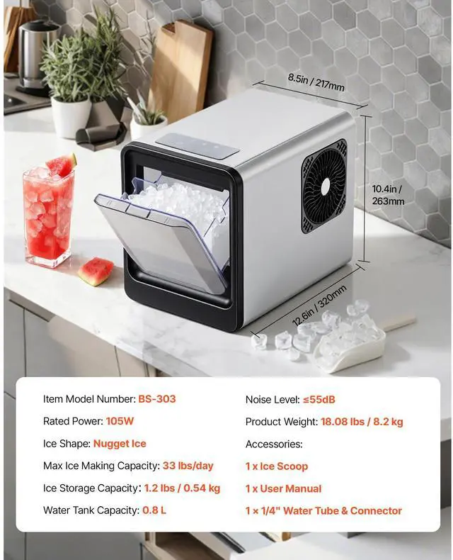 Max Ice Making Capacity: 33 lbs/day (15 kg/day)