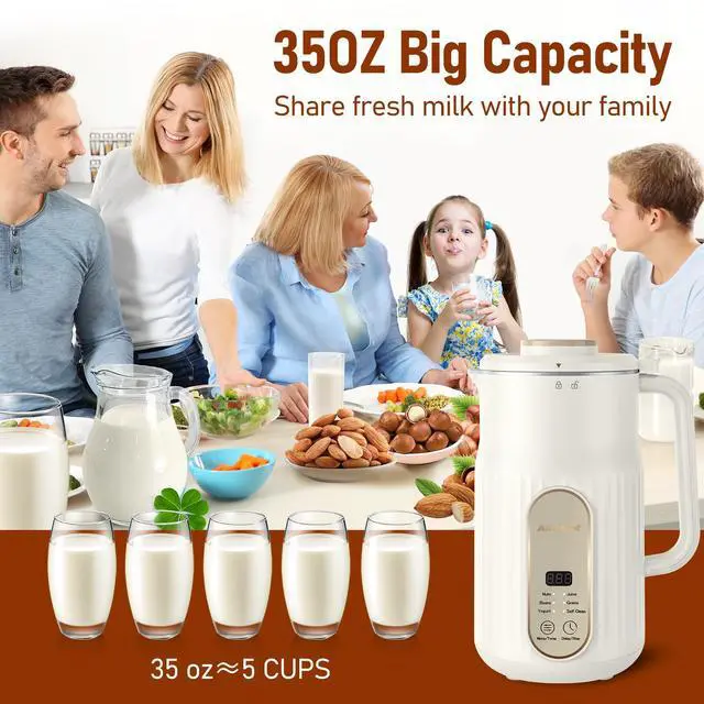 BIG CAPACITY -This AlfaBot N2 Nut milk maker has been upgraded to capacity of 1000ml/35 OZ (about 5 cups), perfectly for family use, just enjoy the fresh home-made milk with your family.