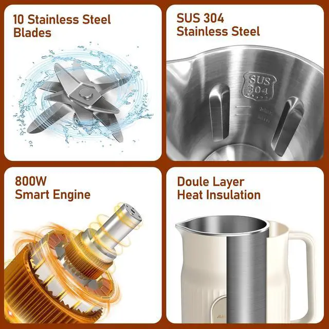 FOOD-GRADE MATERIALS - This almond milk machine maker is made of high-quality, food-grade materials that are easy to clean and maintain (The body inside is made of SUS 304 stainless steel, the lid is made of food-grade plastic), ensuring that you can enjoy your homemade nut milk for years to come.