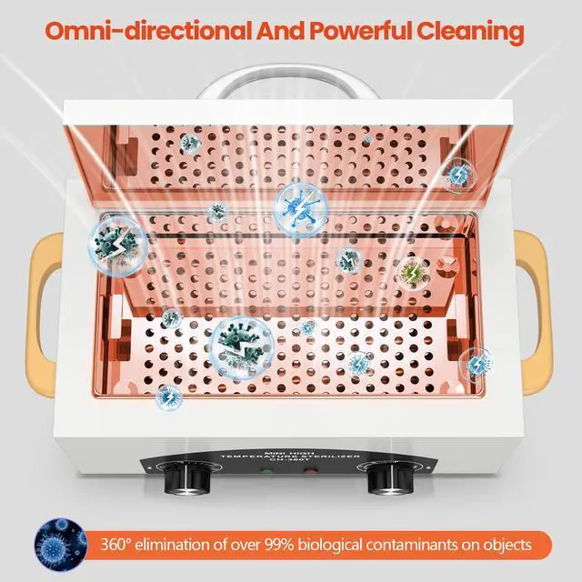 All-Around and Effective CleaningThis 300W cleaning box reaches temperatures above 125°C (257) with ease, destroying over 99% of biological contaminants attached to objects in all directions. This reliable cleaning partner will help you solve common hygiene problems.