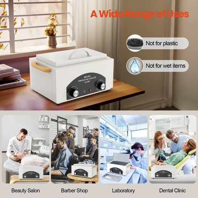Wide ApplicationThis cabinet is for cleaning metal tools like nail clippers, scissors, tweezers and knives. It can be used in many places, such as nail salons, barber shops, laboratories, dental clinics, restaurants and homes. Please remember that do not use on plastic or wet products.