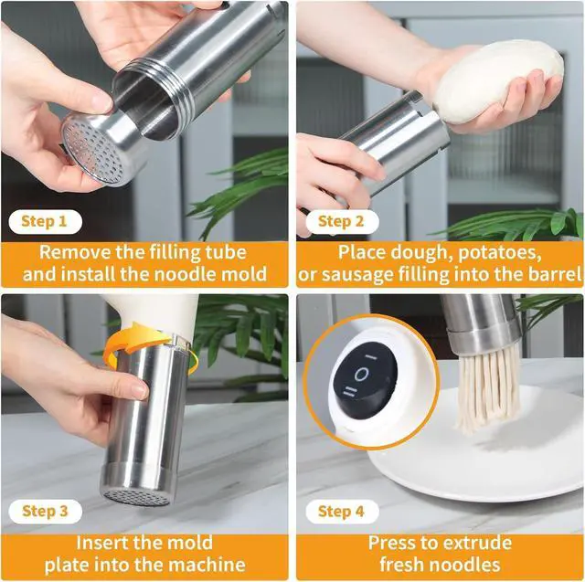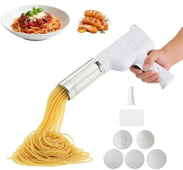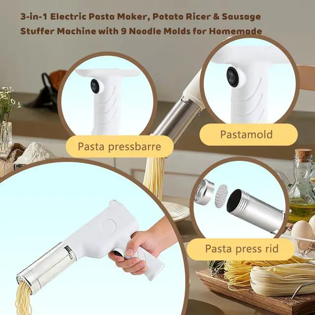 Make cooking easier and more fun with this 3 in 1 Electric Potato Ricer and Pasta Maker Machine. Designed for everyday kitchens, it quickly transforms soft foods into creamy mashed potatoes, fresh noodles, or homemade sausages all with one compact appliance. The powerful motor provides smooth, consistent output, while interchangeable heads let you switch between functions in seconds. Perfect for mashed potatoes, spaghetti, ramen, or sausage fillings, this multi function kitchen tool saves time and effort compared to manual presses. Made from food grade materials, its safe, durable, and easy to clean after use. Whether youre preparing dinner for the family or trying new recipes, this all in one food press helps you cook smarter, faster, and cleaner.