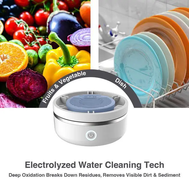 Smart Fruit and Vegetable Washing Machine with 6-Layer Titanium Electrolysis, Hydroxyl & Hypochlorous Oxidation Purifier, Deep Vortex Wash for Fruits, Veggies & Seafood, Auto Shut-Off with Beep