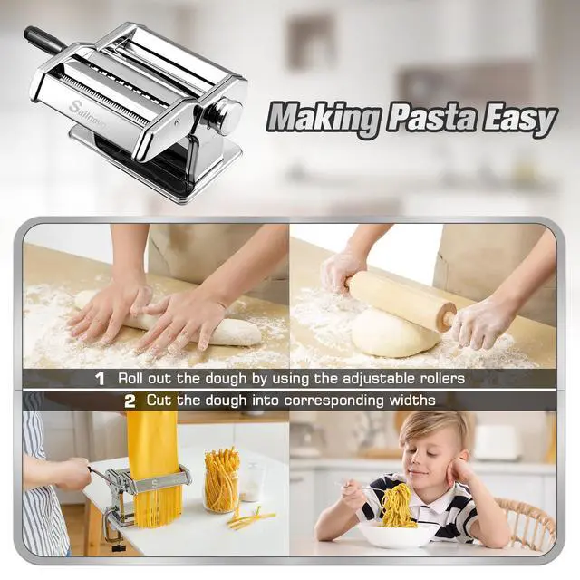DIFFERENT WIDTH SETTINGS SUIT VARIOUS PASTAChoose different pasta with your mood at this moment! A specific cutting machine makes the pasta slices can be cut into two widths-2.0 or 4.5 mm; very suitable for making spaghetti, lasagna, etc. A pasta roller and cutter can satisfy all your pasta-making needs.
