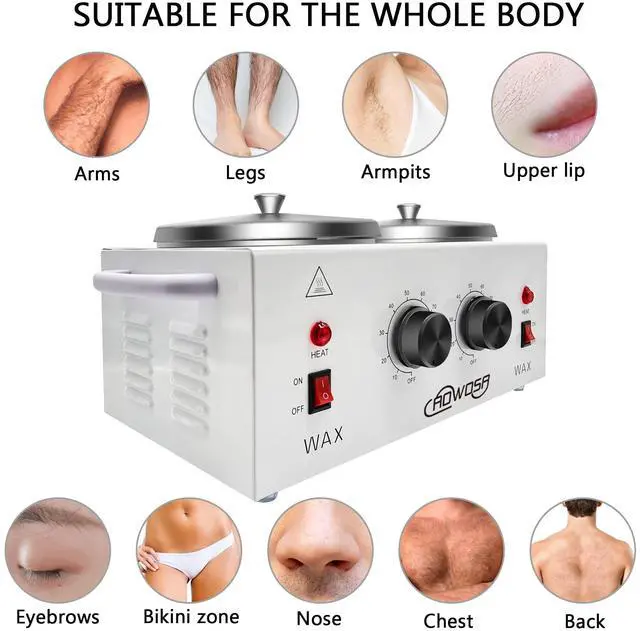 This wax warmer is suitable for almost all types of wax. For example depilatory wax, brazilian wax beans, hard Wax, soft Wax, canned wax, wax cakes, wax blocks, etc.