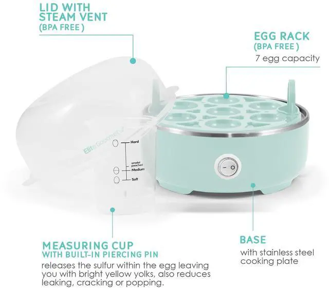 SEVEN EGG CAPACITY: Cook up to 7 eggs in soft, medium, or hard-boiled firmness, while saving time and water. Eggs come out consistently perfect, shell is easy to peel, and cleanup is simple!