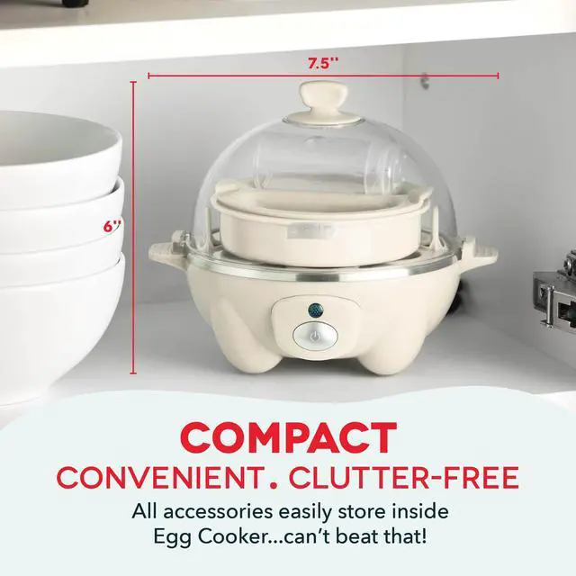• Easy-to-Store Electric Egg Cooker: The egg cooker accessories store conveniently in the appliance for space-saving storage