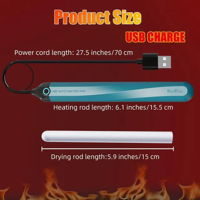 [Heating Rod and Storage Care Drying Stick Set] Includes 1 USB heating rod with LED power-off protection and 2 moisture-absorbing deodorizing drying sticks. If you're tired of cold surfaces and dislike damp storage environments, this heating and drying stick set is worth getting! The eco-friendly material is non-toxic, odorless, and harmless, featuring a 100% waterproof design for easy cleaning.