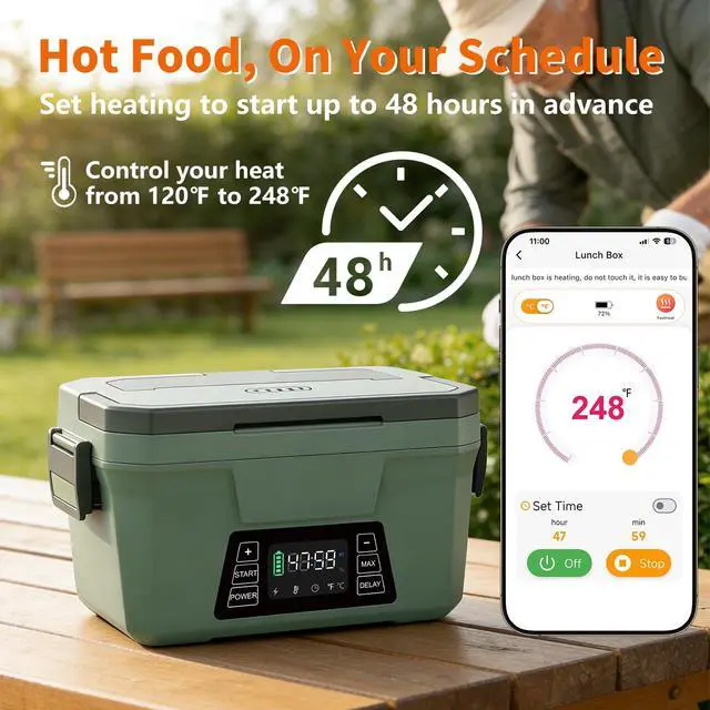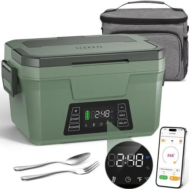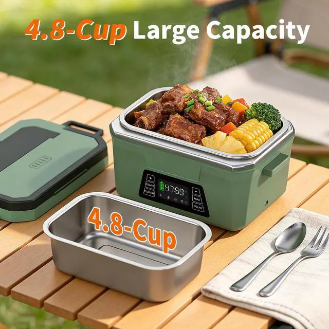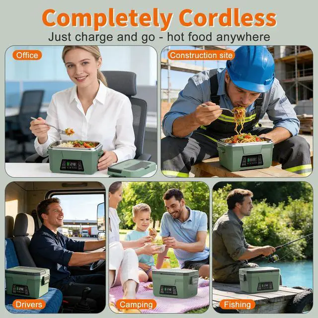 Cordless Electric Lunch Box for Adults, Rechargeable Heated Lunch Box with Scheduled Heating, Portable Food Warmer with Memory Function & Automatic Keep Warm, Christmas White Elephant Gifts