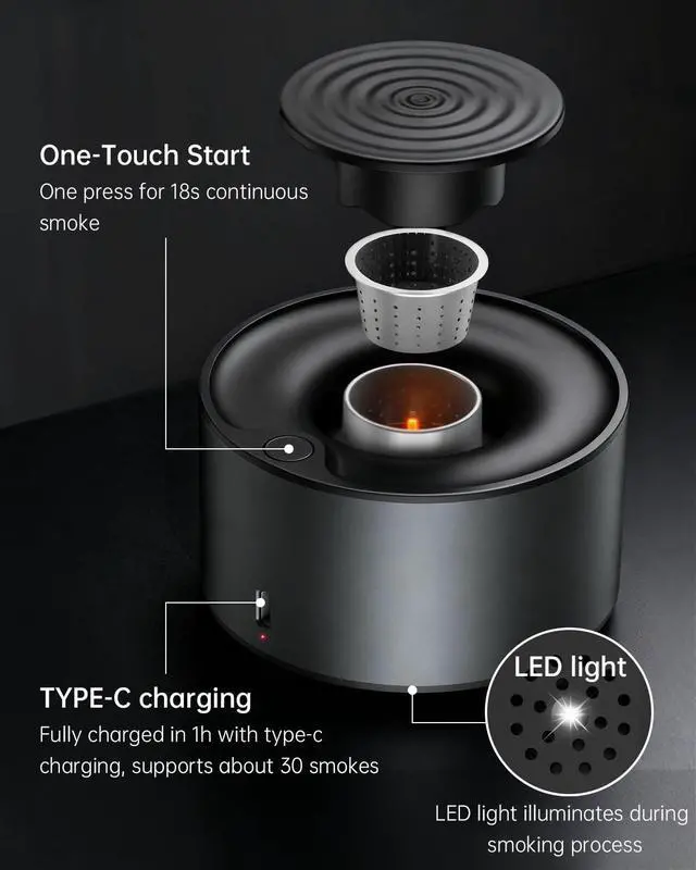 Easy Operation: This bourbon smoker kit comes with detailed instructions. Just add your favorite wood chips, place the machine over your glass or dish, and press the button to generate the smoky smoke
