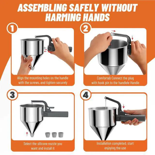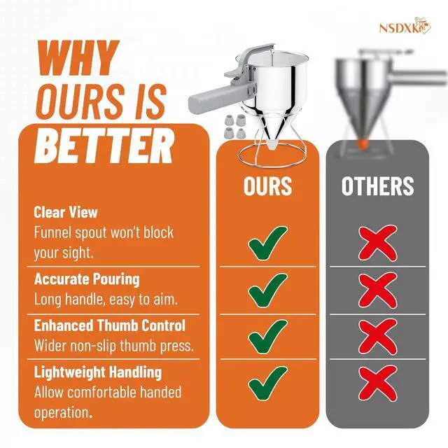 Durable Stainless Steel Body: Food-grade 304 stainless steel resists rust, stains, and odors for years of reliable kitchen use. It is easy to disassemble and makes it easier to clean the inside of the funnel.