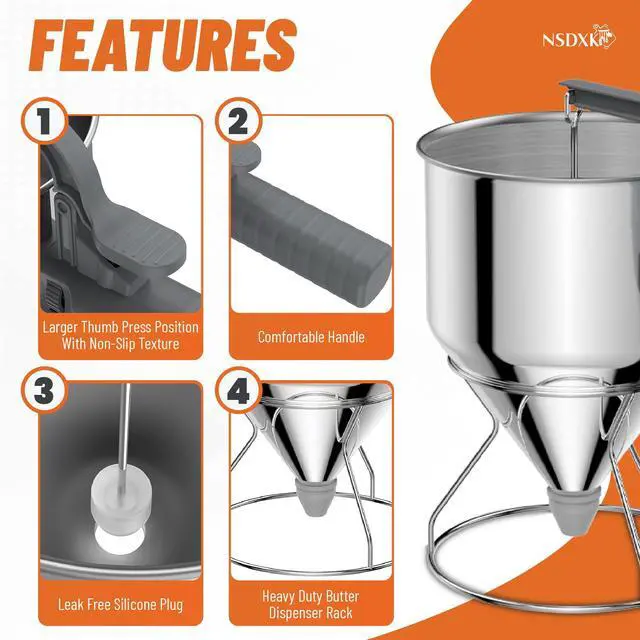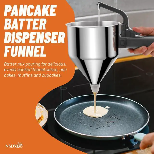 Multi Usage: The batter dispenser with squeeze handle is part of the carnival funnel cake kit. It can also make pancakes, crepes, muffins, cupcakes, takoyaki balls, waffles, chocolate balls, etc. It is also a good gift for your family or friends.