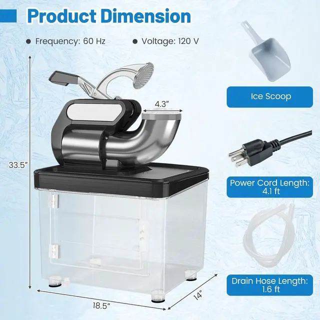 Quench your thirst for cool treats with our ice shaver machine with an ice scoop!