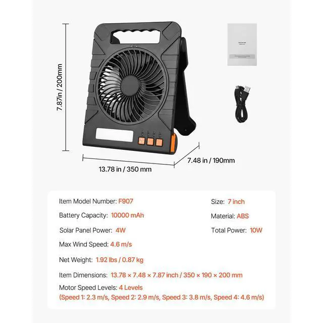 Powerful Wind: High-speed brushless motor provides a cool and comfortable outdoor experience. Wind speeds range from 2.3 m/s to 4.6 m/s across 4 settings, easily handling cooling needs in different conditions. This solar fan is ideal for outdoor cooling
