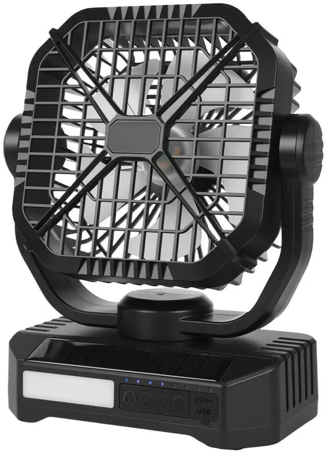 LED Lighting: Hidden hook design for convenient hanging, saving space while meeting outdoor lighting needs. This solar portable fan serves as both a fan and a light source for all your camping and outdoor adventures