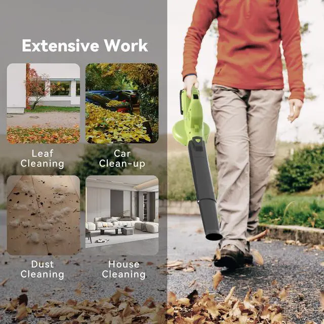 [Extensive and Effective Work] JAGROM electric leaf blower equips with powerful motor, 130MPH and 180CFM will provide you with easy and efficient work. With the cordless design, it is easy to cross the courtyard, living room and various crevices. It is suitable for lawn care, garden, yard, depot, car and house cleaning.