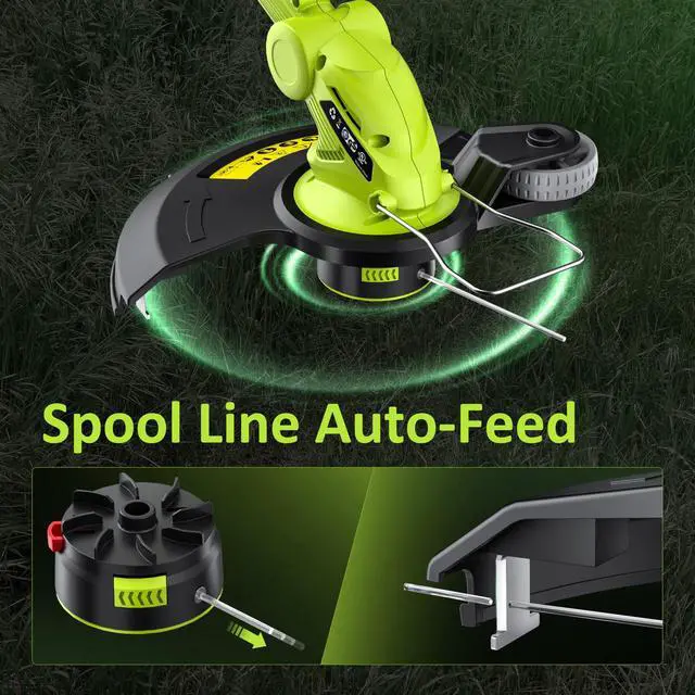 There should be a string trimmer, two batteries, one charger, 8 spool lines(One of them is already on the machine), 2 spool caps(One of them is already on the machine) in the package. If anything missing, please let us know.