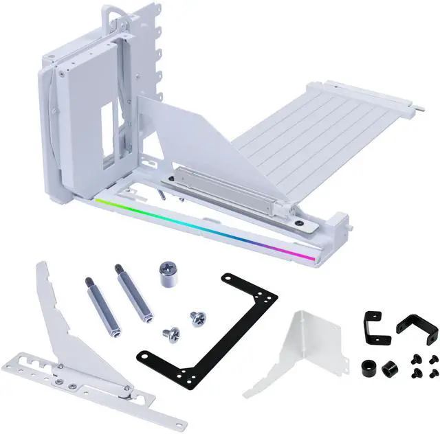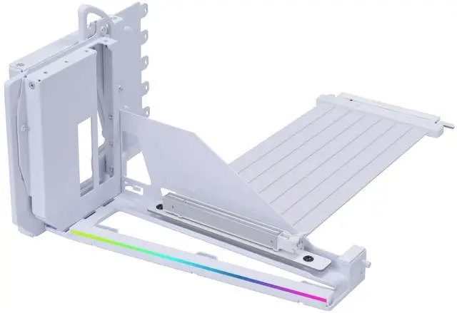 - GPUs featuring an overclocking button may conflict with the adjustable structure of the GPU support bracket. Please remove the overclocking button prior to installation to avoid interference. GPUs equipped with three full-size DisplayPorts may contact the slot when the mount is installed at a slight angle.