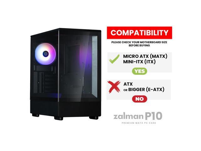 Zalman Case Cooler PSU Combo - Zalman P10 Black Micro-ATX Panoramic PC Case + 9X Performa Plus ARGB 180W TDP CPU Cooler + Gigamax 600W 80+ Plus Bronze PSU