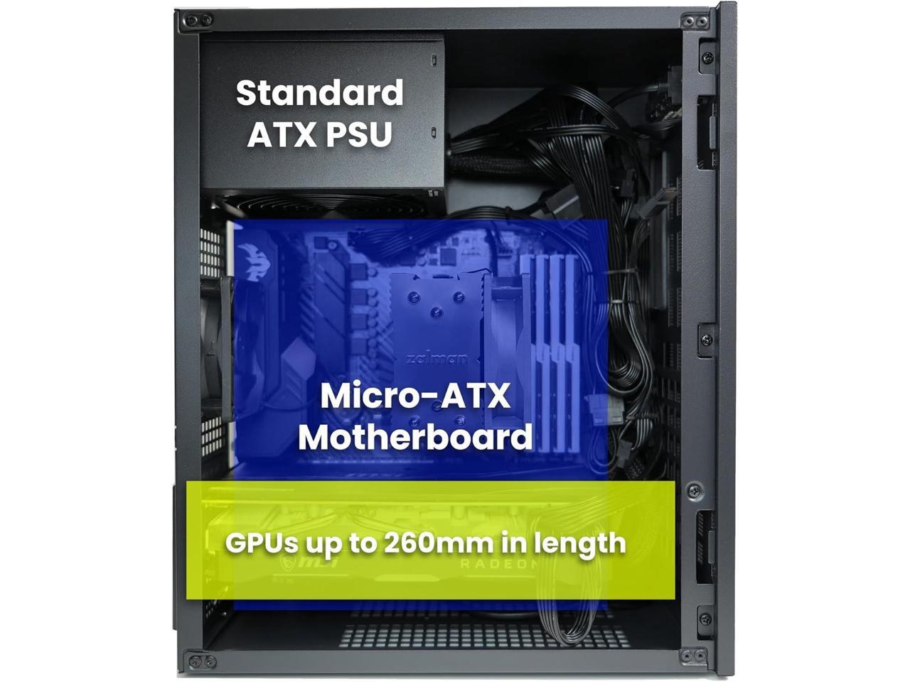 PC Builder Bundle - Zalman PC Case with PSU Combo - Cubix Compact m-ATX ITX PC Case for Workstation, Black with 80 Plus Bronze 600W Power Supply