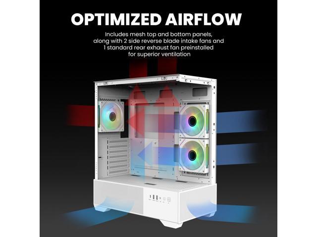 - Premium Design & Cooling: ATX mid-tower with panoramic tempered glass front/side panels and 3 preinstalled Prism ARGB fans for optimal cooling and vibrant lighting