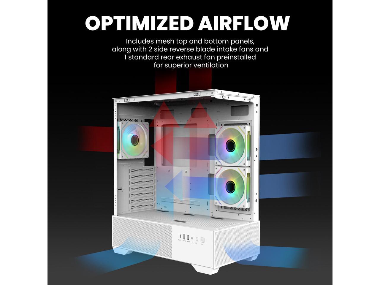 - Optimized Airflow: Comes with 3 preinstalled Prism Infinity Mirror ARGB fans (2 reverse blade for side intake, 1 standard blade rear exhaust) to enhance cooling and illumination.