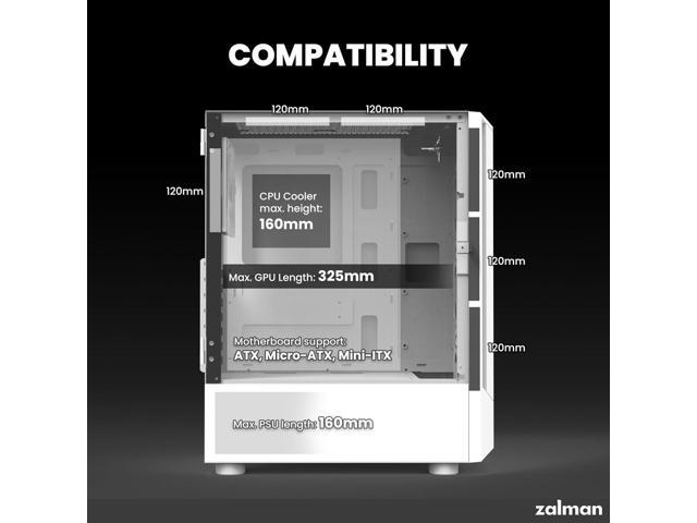 PC Builder Bundle - Zalman PC Case with PSU Combo - Fit ATX Mid-Tower PC Case, White 4 x 120mm ARGB fan, with 80 Plus Bronze 600W Power Supply