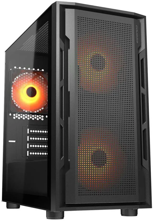 The perforated front ventilation panel is a statement of COUGARs distinctive visual identity and provides superior ventilation, integrating minimalist aesthetic and cooling performance.