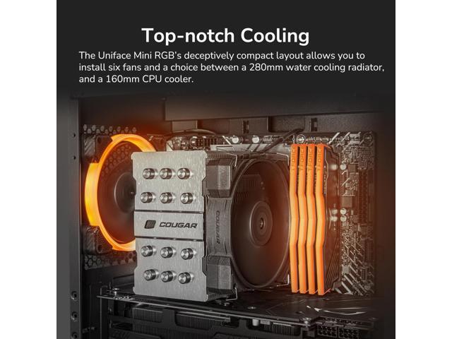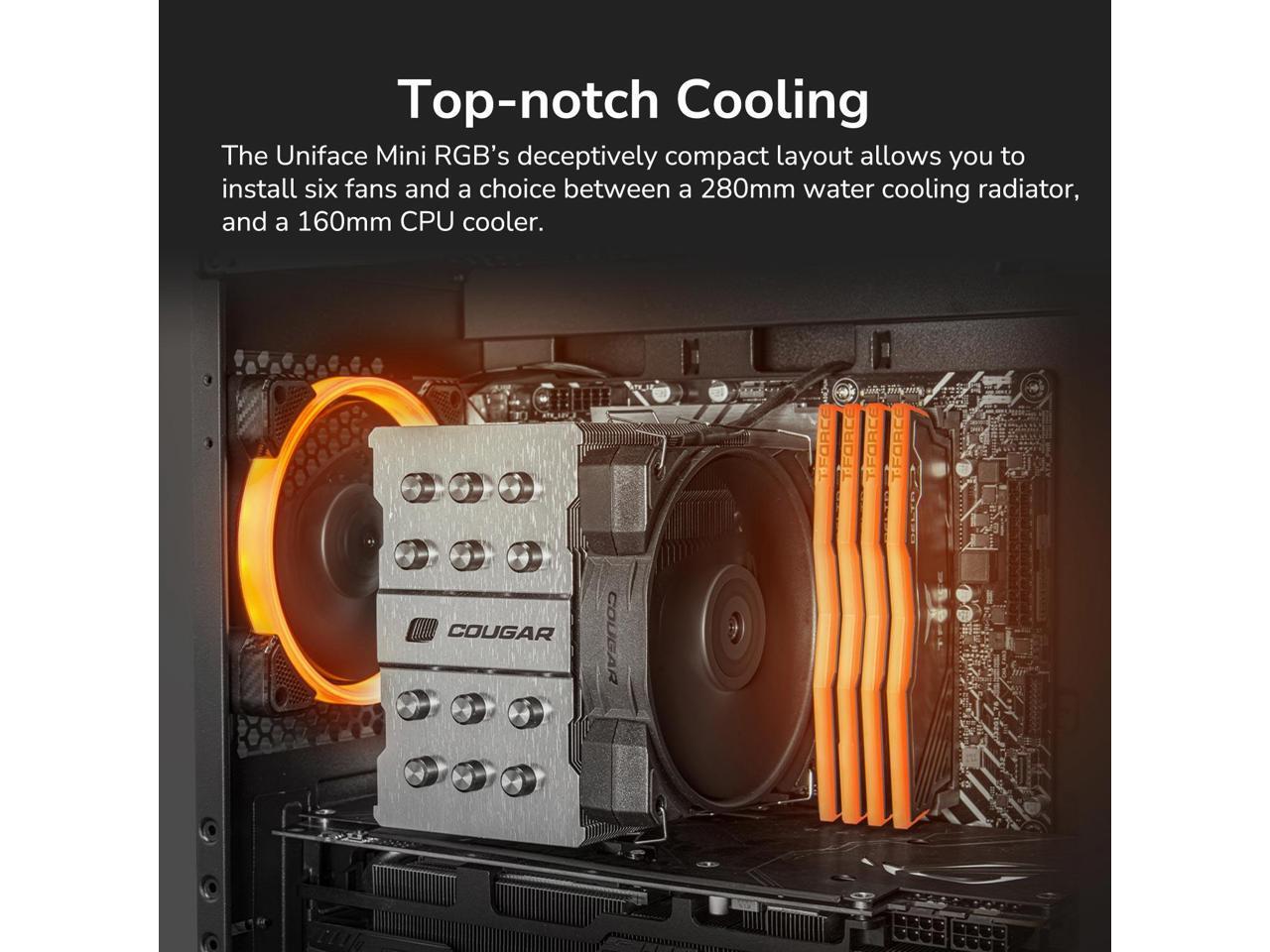 COUGAR UNIFACE Mini RGB Case, Max. 340mm GPU Length, Max. 280mm Liquid Cooling & Max.160mm CPU Cooler, pre -Installed Fan x 3 pcs, Support Upto 6 Fans, Perforated Front Panel (Black)
