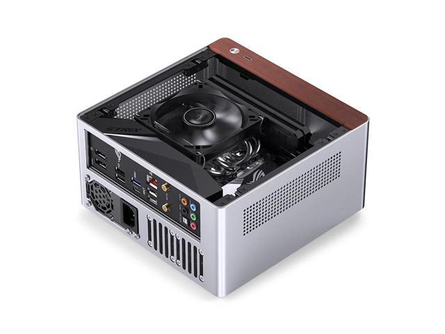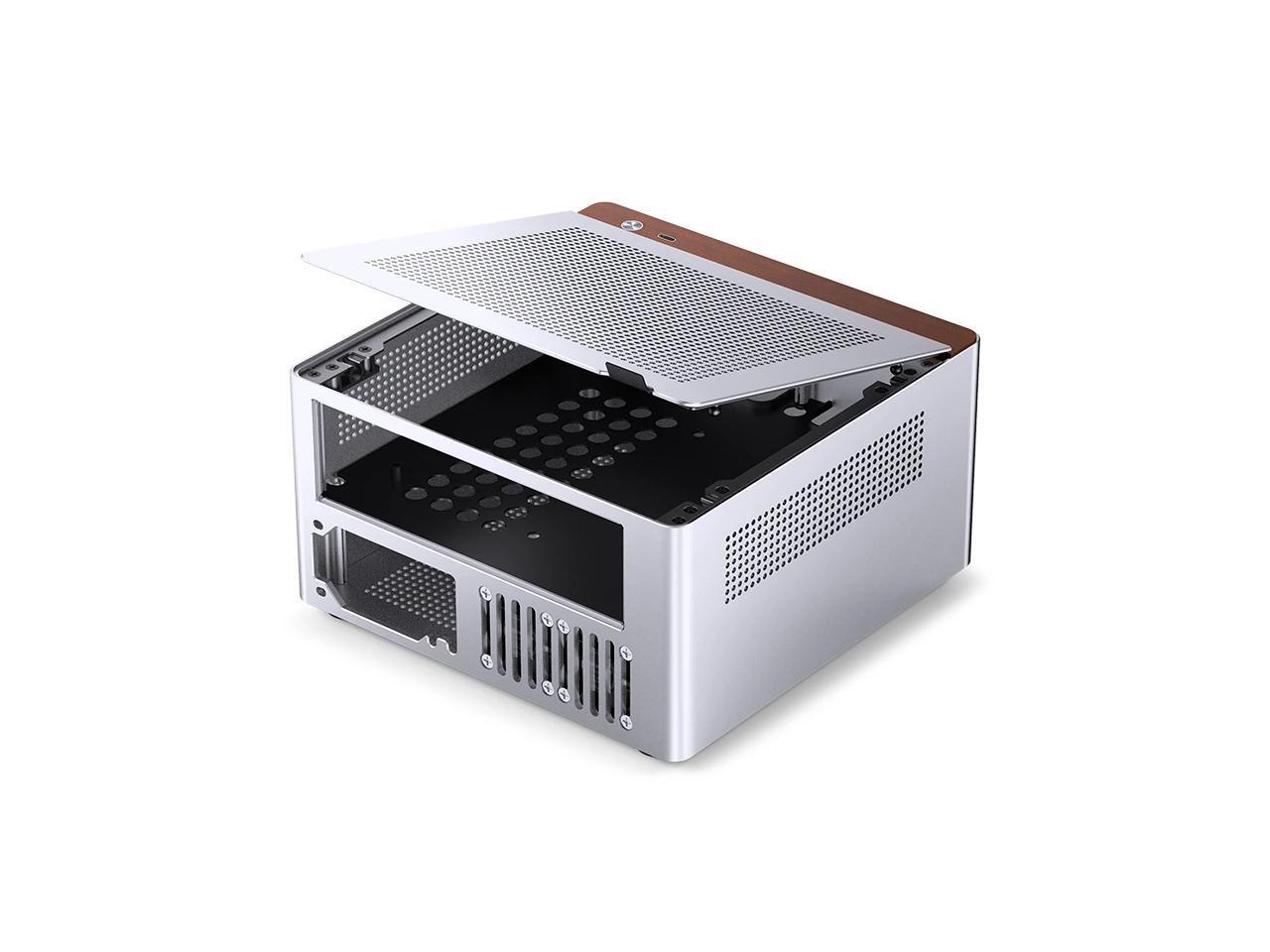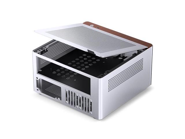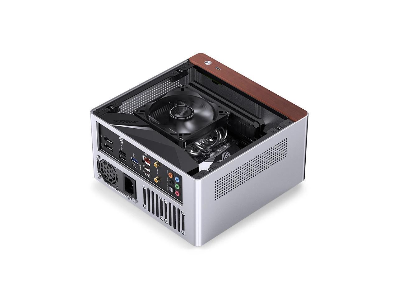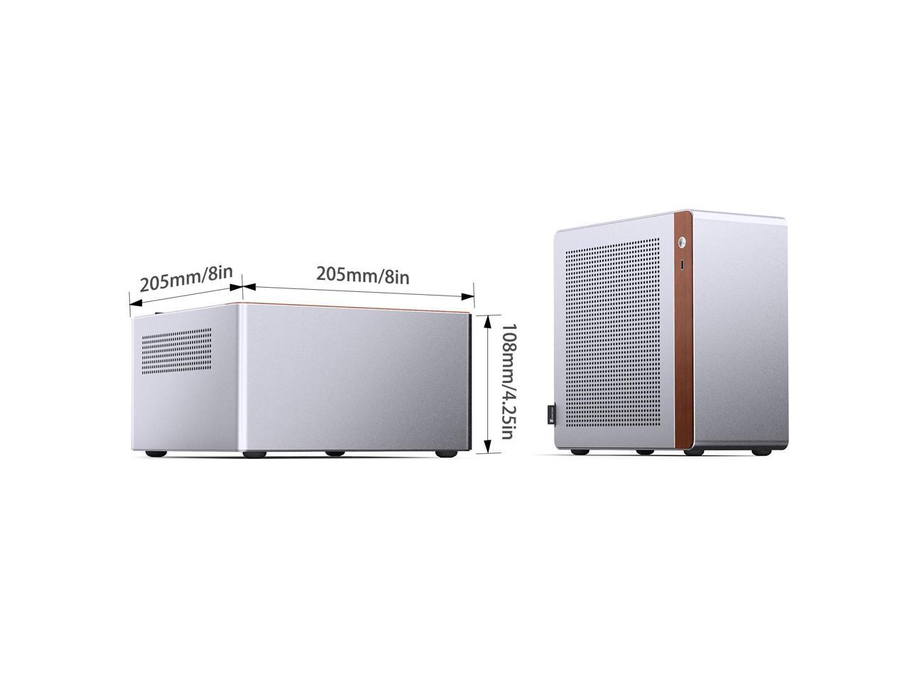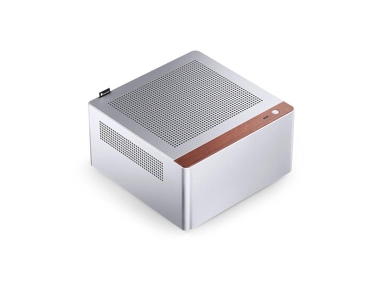 JONSBO N10 SILVER MINI ITX PC Case, Aluminum Alloy with Walnut Trim Desktop Case, Standing or Lying , Compatible with 1U Flex PSU,Compact & Portable 4.5L SFF Case, With 2Fans,4x2.5"SSD,SILVER