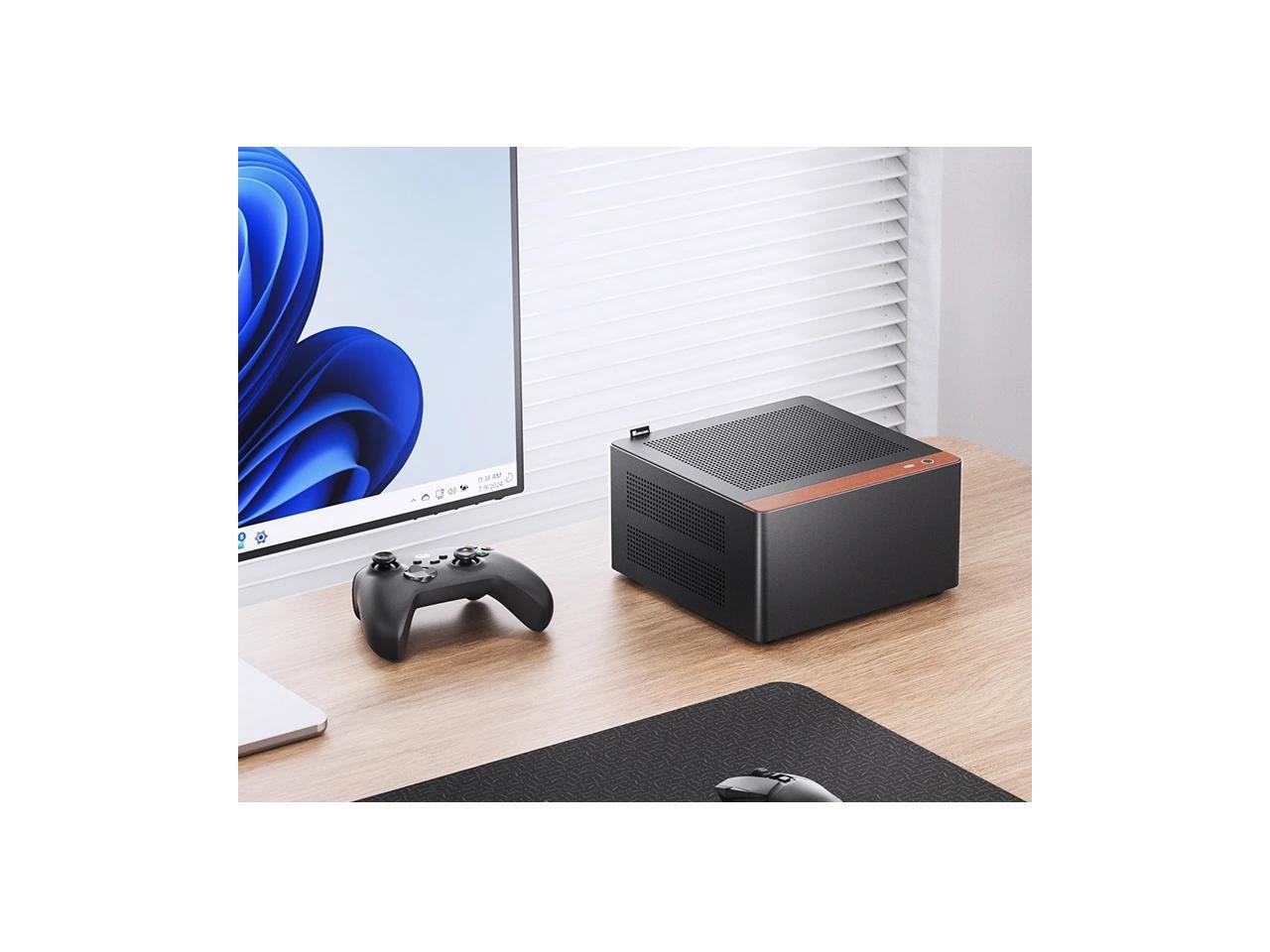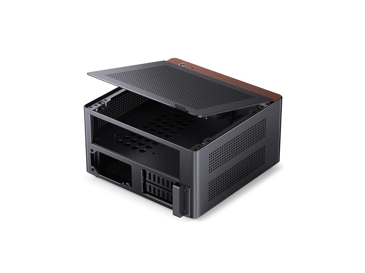 JONSBO NV10 BLACK MINI ITX PC Case, Aluminum Alloy with Walnut Trim Desktop Case, Compatible with 1U Flex PSU, low-Profile GPU,Compact &Portable 4.5L Case,with a PCI-E 4.0 Extended Cable, NV10 BLACK