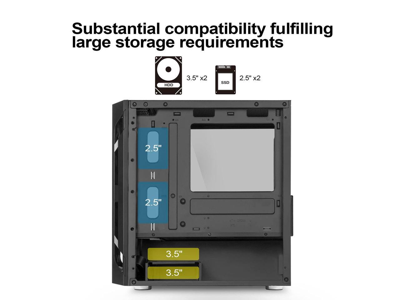 - Adjustable drive cage allows flexibility in PSU size and cable management space