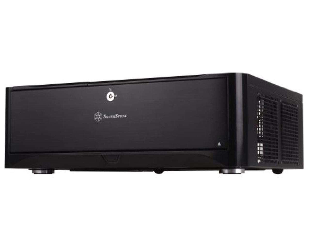 silverstone technology htpc case with aluminum front panel micro-atx, 2x hot-swap drive bays, 3x120mm golf bladed fan, usb 3.0 x2 in black gd06b-usa