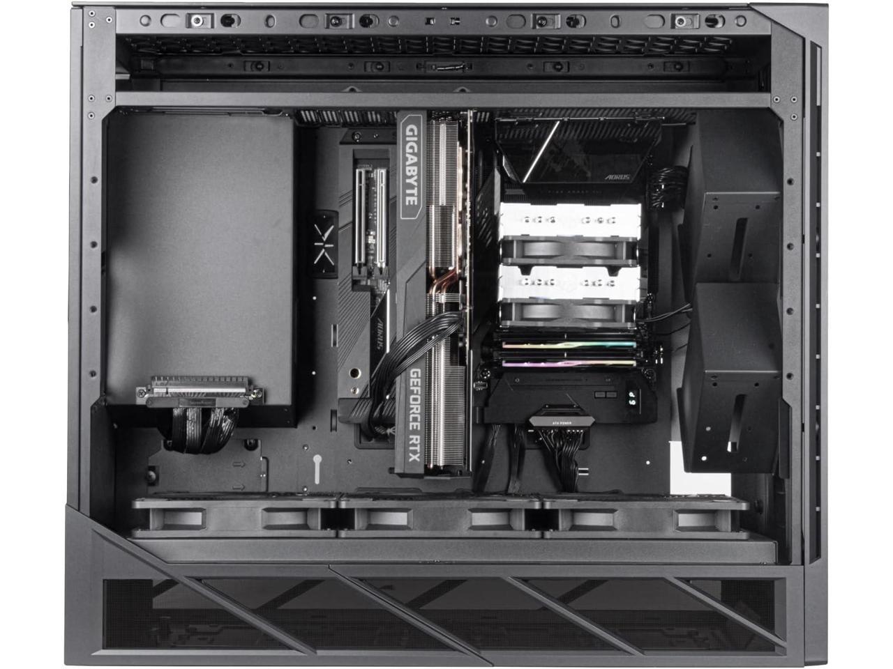 - Stack effect design with 90-degree rotated motherboard layout and Innovative 11.3° forward tilted GPU placement