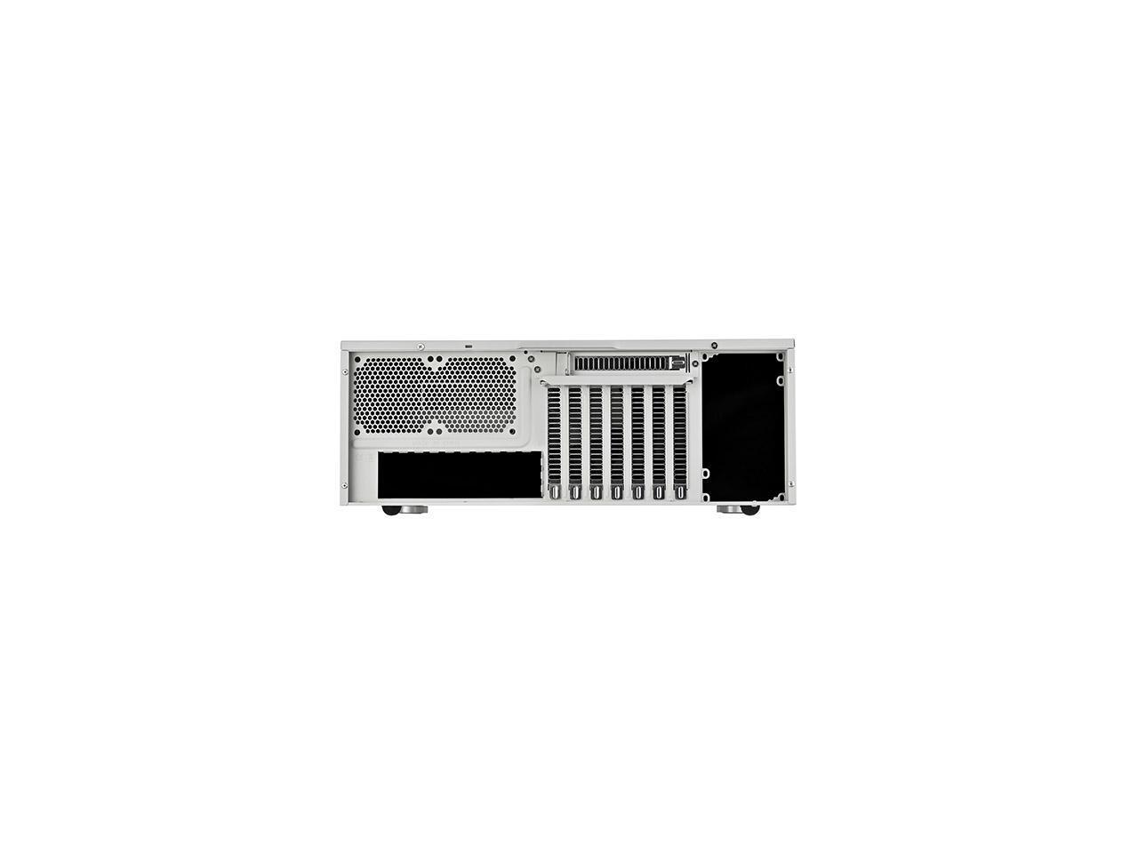 - Universal drive cage design compatible with 5.25", 3.5", and 2.5" storage drives