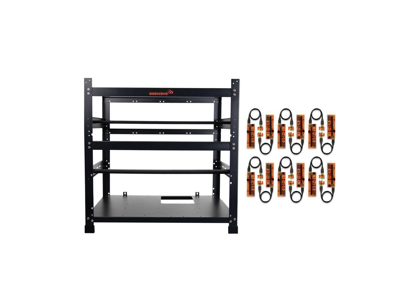 AAAwave 12GPU Mining Rig Frame (Black) and AAAwave PCIe Riser V011 Pro for GPU Mining (12pcs)