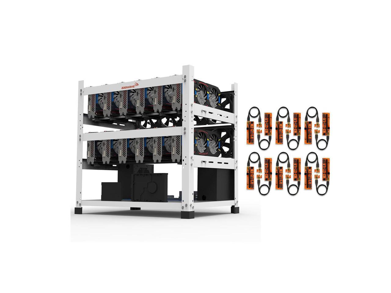 AAAwave 12GPU Mining Rig Frame (white) and 12 x AAAwave PCIe Riser V011Pro 1x to 16x Graphic Extension for GPU Mining