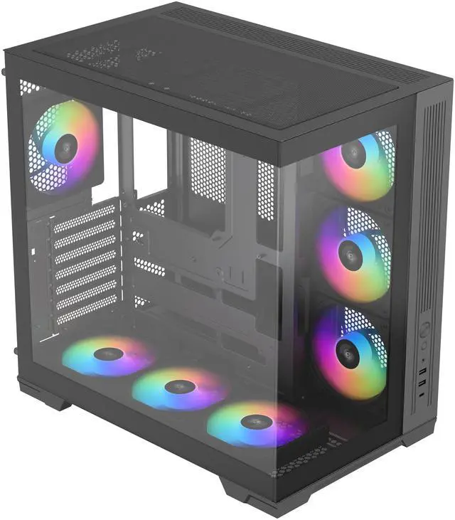 It comes with 7 pre-installed 120mm PWM ARGB fans and a PWM+ARGB 9+9 HUB, offering unparalleled control over cooling and lighting.