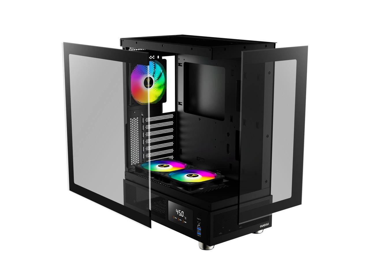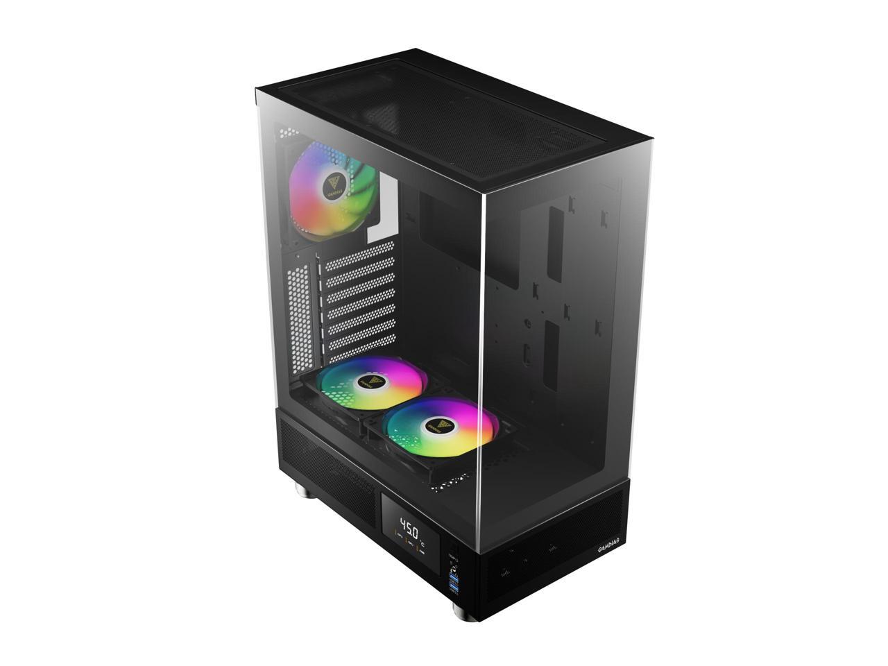 Gamdias ATLAS E1, CPU GPU temp screen, tank with mesh air flow, 3x ARGB 120mm fans, RGB 5v 3pin sync, tempered glass, ATX, MATX, ITX