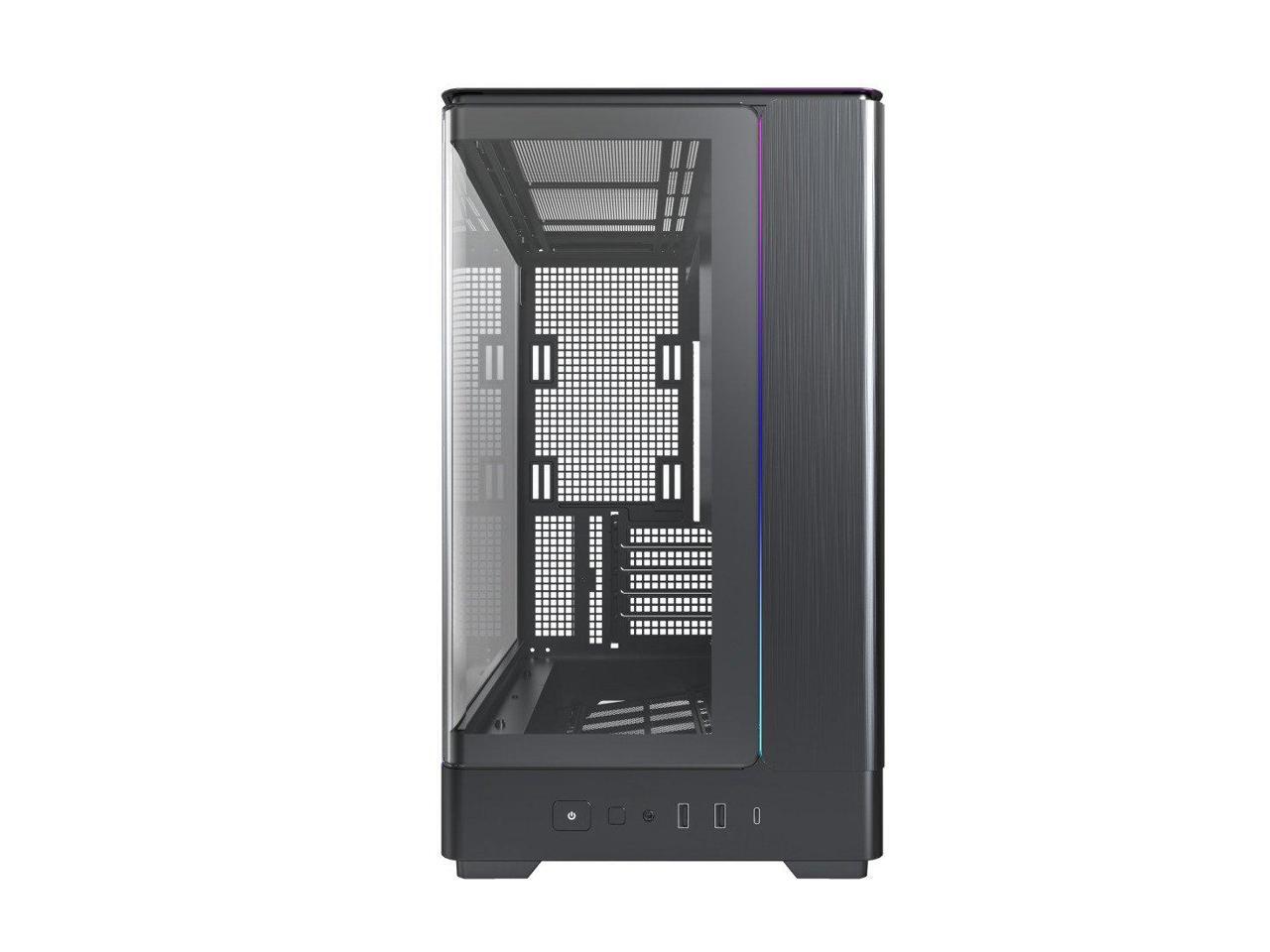 MONTECH KING 15 KING15B Micro-ATX PC Case, Curved Panoramic Glass, Chimney Airflow, 360mm Radiator Support, Compact Build for High-Performance Systems, Black