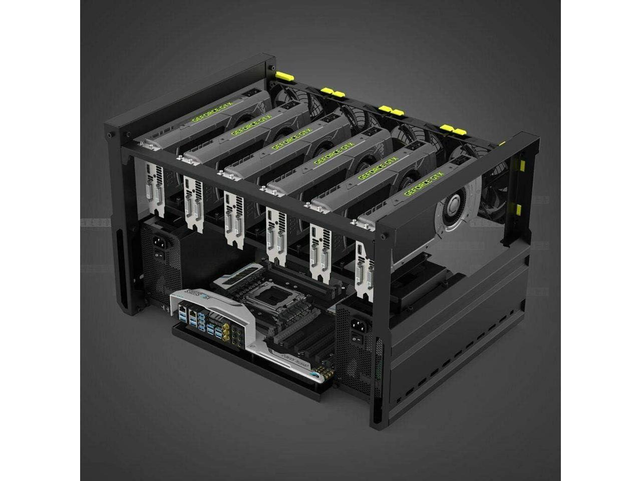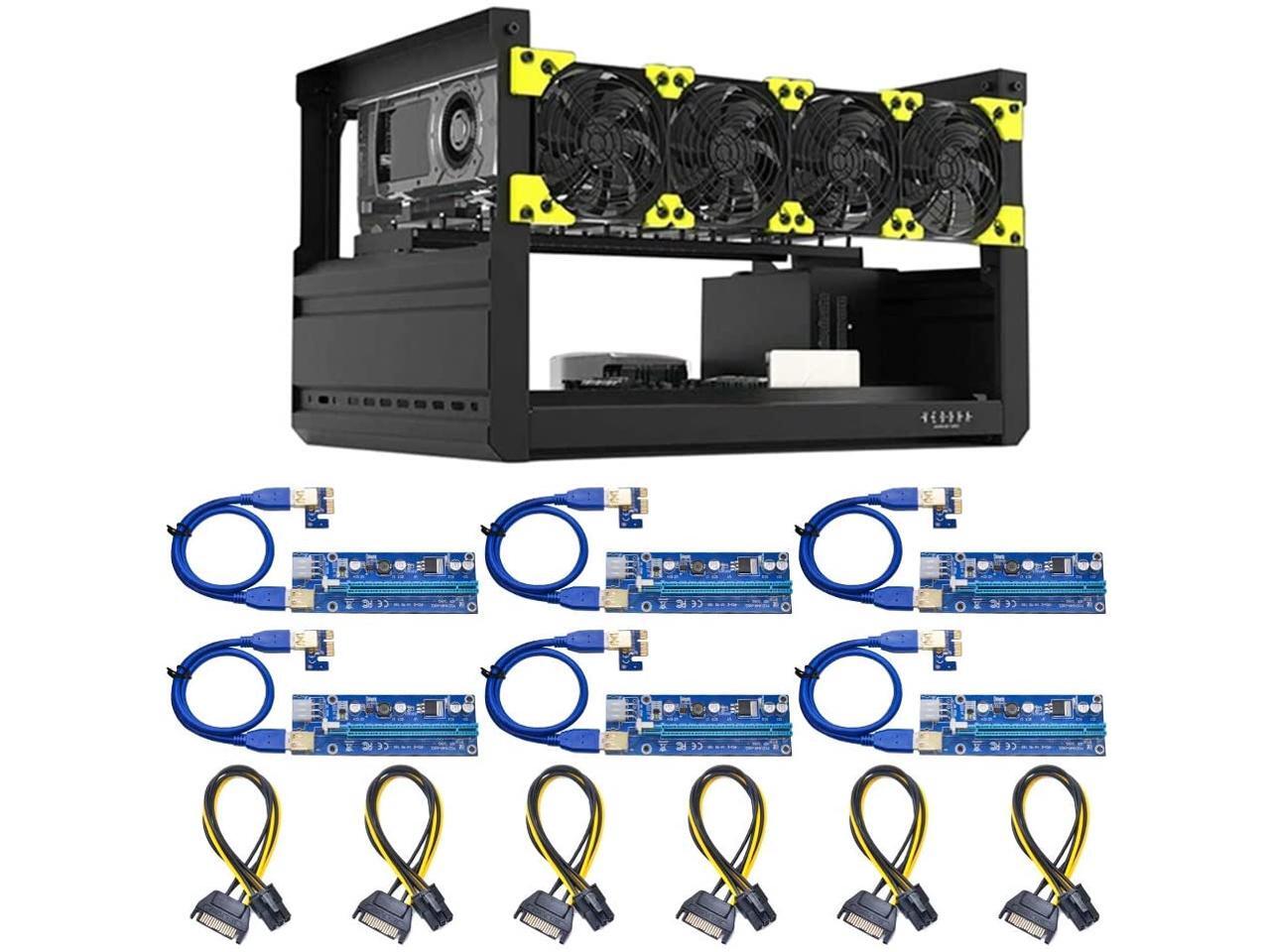 Ethereum Mining Rig Frame 6 GPU with 4 Fans and 6 Adapter for Ethereum(ETH,ETC)/ZCash(ZEC)/Monero(XMR)/Bitcoin(BTC)/Siacoin(SC)(6GPU-T2+4Fans+6Adapter)