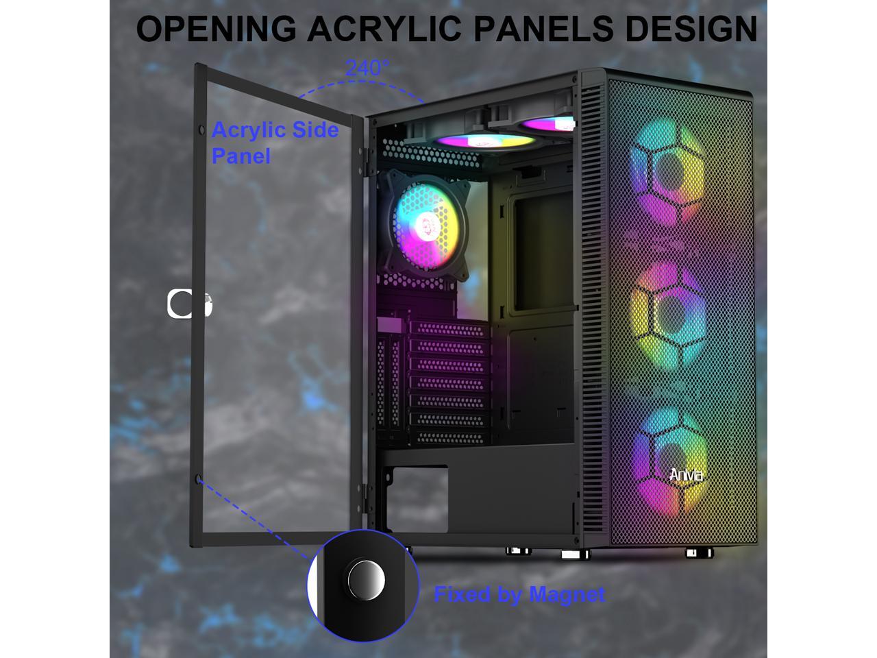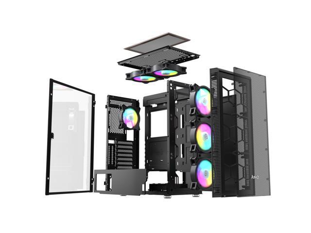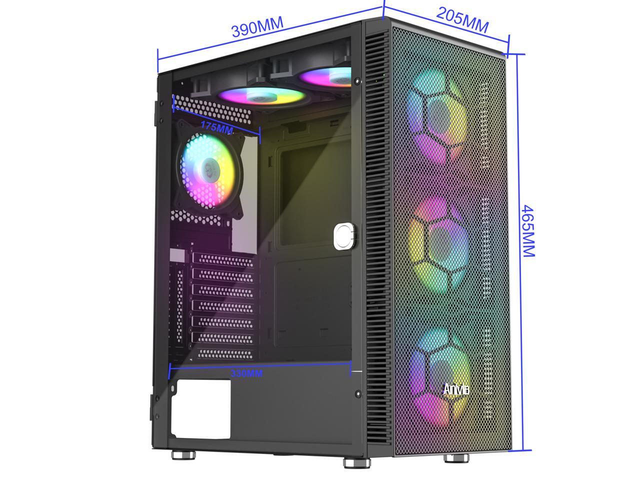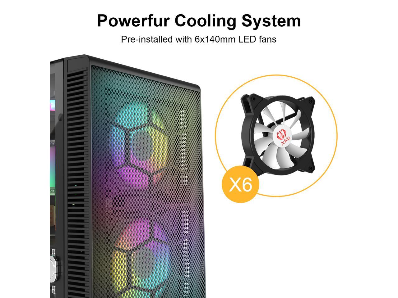 Anivia ATX Mid-Tower PC Gaming Case, Pre-Installed 6PCS Rainbow LED Fans Opening Tempered Glass Panel & Mesh Front Panel Airflow Gaming PC Tower -USB3.0 - Support ATX,Micro ATX,ITX Black