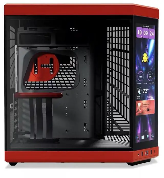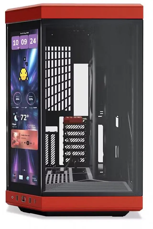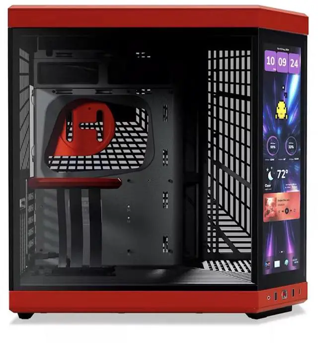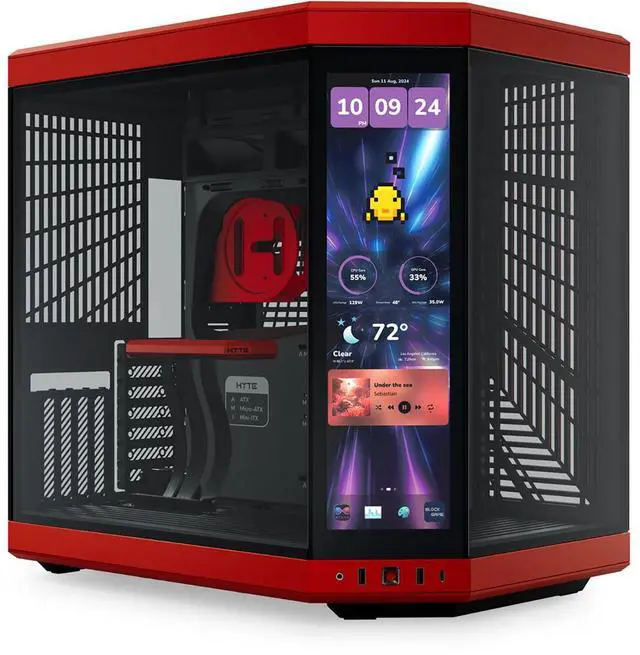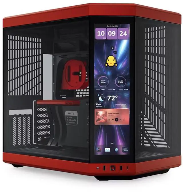 Take your gaming experience to the next level with the Y70 Touch Infinite Dual Chamber Modern Aesthetic Panoramic Tempered Glass Mid-Tower ATX Computer Case. This upgraded dual chamber ATX mid-tower case is designed with a modern aesthetic and offers a next-generation gaming experience. It features a massive 4-slot vertical graphics capacity, allowing you to maximize performance with its extensive cooling capacity. The Y70 is more than just a computer case; it's a showcase for your favorite hardware, designed to display your PC as it was meant to be seen. The mesmerizing 14.5" integrated touchscreen, with a resolution of 688 x 2560 ( 2.5K )